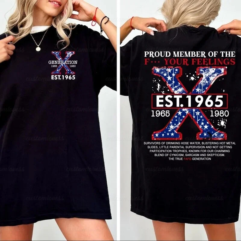 Celebrate your Gen X pride with a touch of personal style! 🇺🇸 This Custom Year Generation X American Flag T-shirt is the perfect blend of vintage nostalgia and patriotic spirit. Featuring a bold American flag design paired with your custom birth year, it’s made for those who grew up in the iconic era of mixtapes, MTV, and timeless memories.