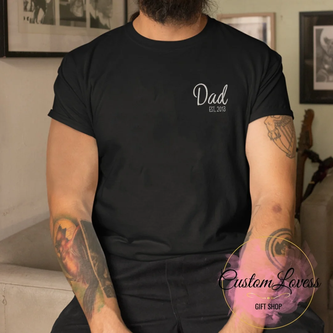 Step into a world where every day is a celebration of fatherhood with our "Dad Est." T-shirt.